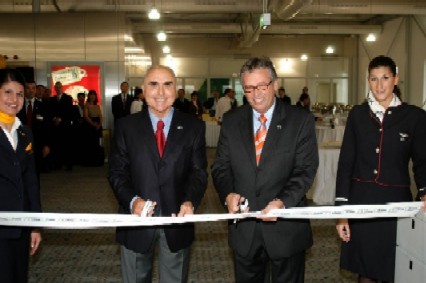 Ο κ. Θεόδωρος Βασιλάκης, Πρόεδρος & Διευθύνων Σύμβουλος της AEGEAN AIRLINES με τον κ. Michael Suesser, Γεν. Διευθυντή της LUFTHANSA για Ελλάδα και Κύπρο κόβουν την κορδέλα των εγκαινίων.