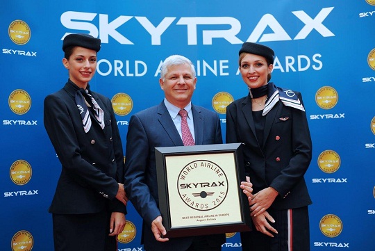 Στην ψηφοφορία, που πραγματοποιήθηκε μέσα στο πλαίσιο των Skytrax World Airline Awards, γνωστών ως βραβείων επιλογής επιβατών, την περίοδο Σεπτεμβρίου 2014 – Μαΐου 2015, περισσότεροι από 18,89 εκατομμύρια επιβάτες και περισσότερες από 105 εθνικότητες, επιβράβευσαν την AEGEAN για το υψηλό επίπεδο υπηρεσιών που παρέχει στους επιβάτες της. Το Βραβείο αυτό απονέμεται στην AEGEAN για 5η συνεχόμενη χρονιά και για 6η φορά από το 2009 έως σήμερα.