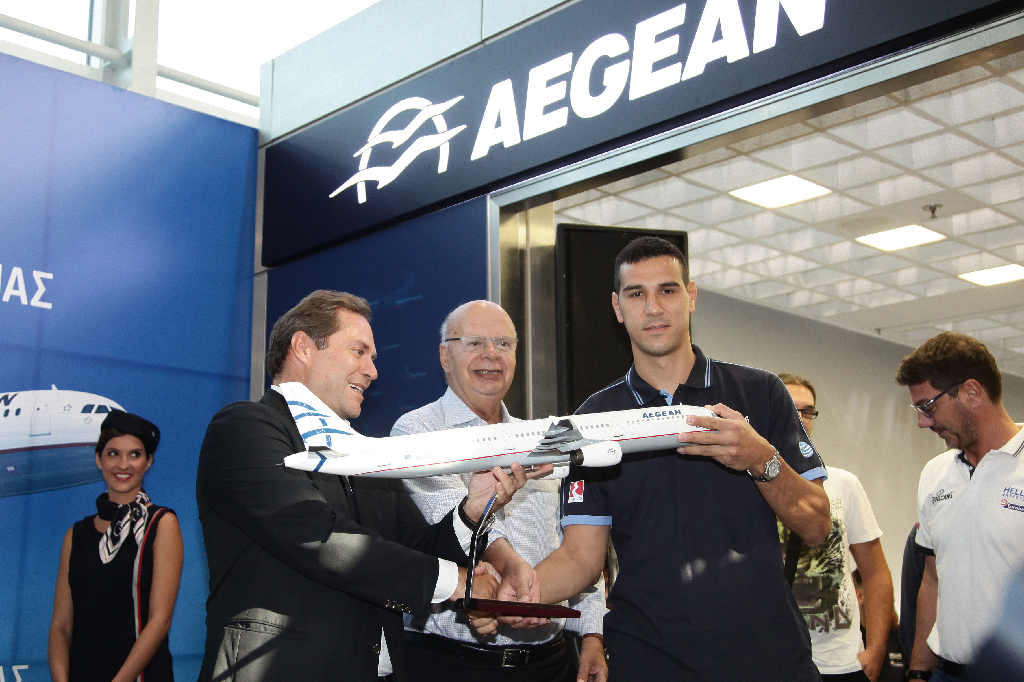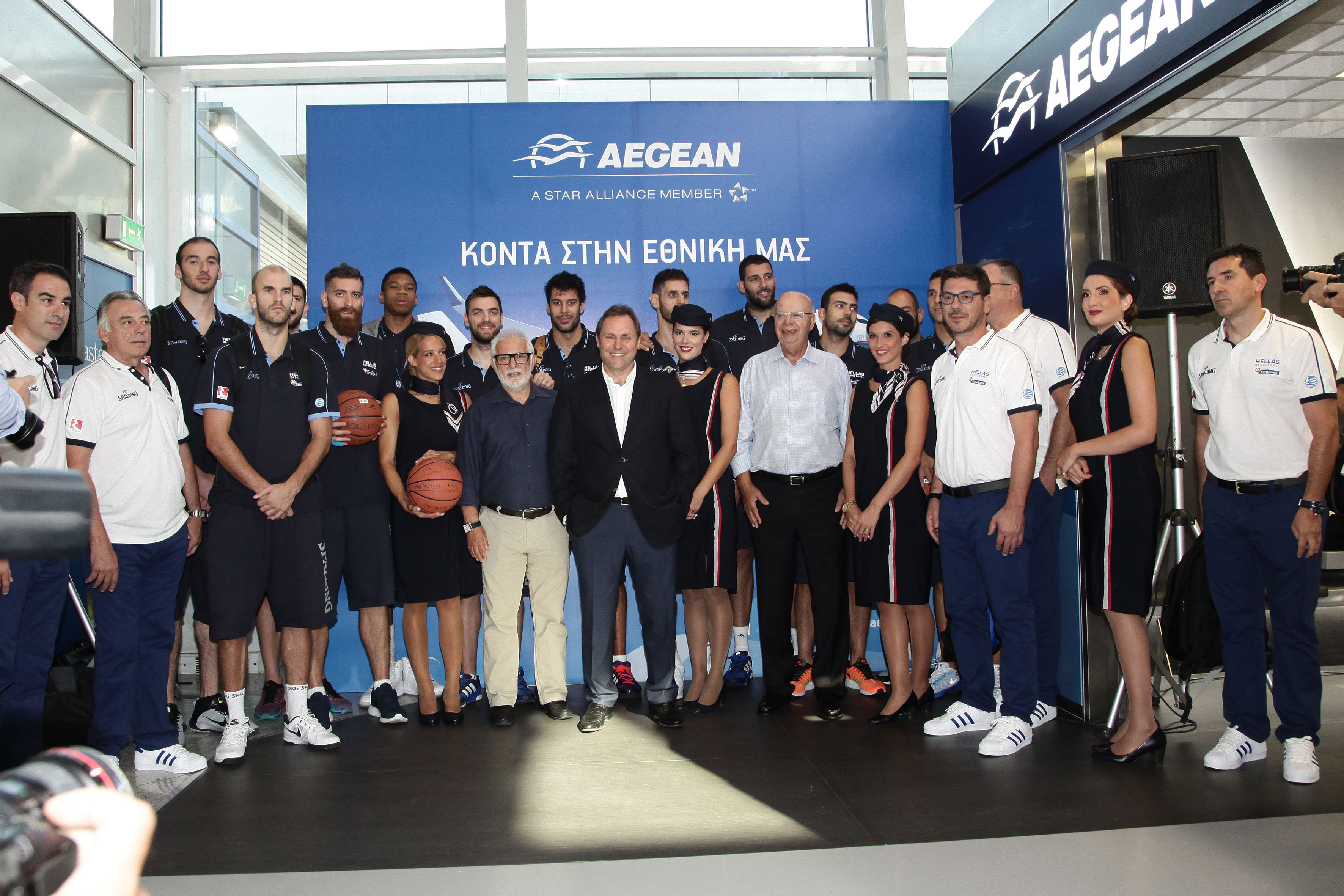 Κηφισιά, 3 Σεπτεμβρίου 2015. Η AEGEAN και η Ελληνική Ομοσπονδία Καλαθοσφαίρισης (ΕΟΚ), λίγο πριν την αναχώρηση της Εθνικής Ομάδας Μπάσκετ για το Ζάγκρεμπ, όπου θα διεξαχθεί η Α’ φάση του Eurobasket 2015, ανακοίνωσαν και επίσημα την συνεργασία τους, αφού η AEGEAN είναι υπερήφανος υποστηρικτής και ο Αποκλειστικός Αερομεταφορέας όλων των Εθνικών Ομάδων Καλαθοσφαίρισης και αποχαιρέτησαν τους Διεθνείς μας με τις θερμότερες ευχές τους για καλή επιτυχία.
