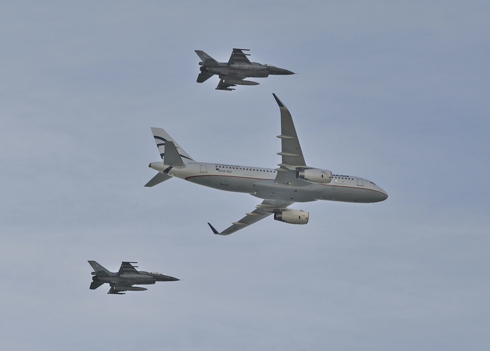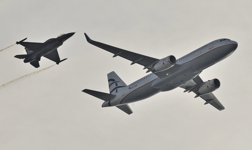 ΔΙΕΛΕΥΣΗ ΑΠΟ ΤΟ ΦΑΛΗΡΟ ΣΕ ΣΧΗΜΑΤΙΣΜΟ ΑΠΟ ΤΟ AIRBUS 320ceo ΚΑΙ ΤΟ F16'