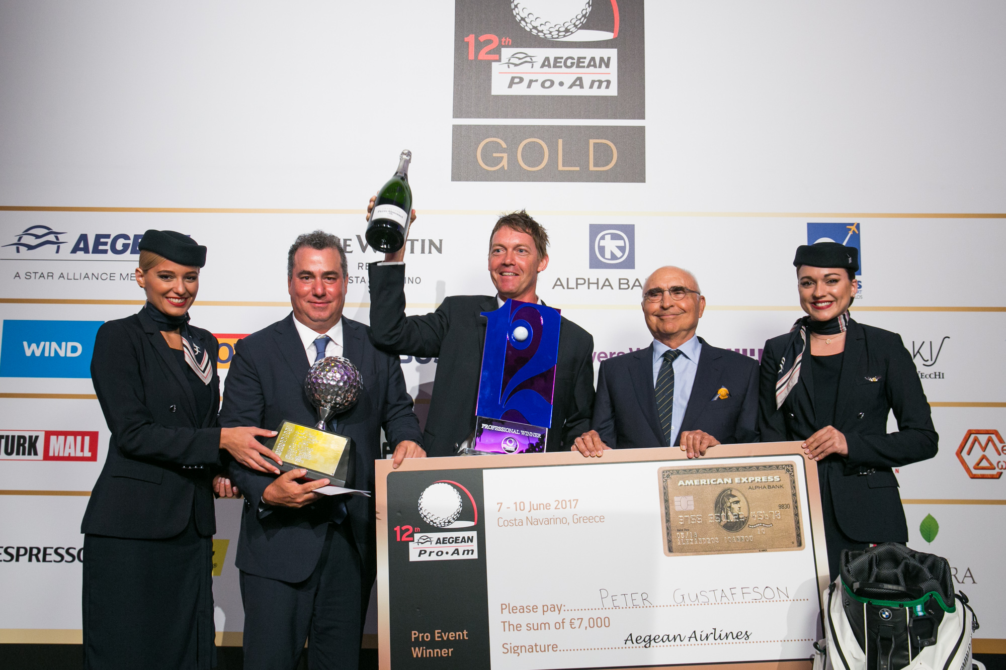 Στην παρθενική του εμφάνιση στο Aegean Airlines Pro-Am, ο Peter Gustafsson (PGA of Sweden) πραγματοποίησε μία εντυπωσιακή εμφάνιση στο playoff κερδίζοντας το χρηματικό βραβείο των 7.000 ευρώ και το τρόπαιο του νικητή στην κατηγορία των επαγγελματιών. Ο Peter Gustafsson μίλησε με τα καλύτερα λόγια για τη διοργάνωση αλλά και για την Ελλάδα, την οποία επισκέφτηκε για δεύτερη φορά, δηλώνοντας μεταξύ άλλων «Θέλω να ευχαριστήσω την Aegean Airlines για όσα έχει κάνει. Είναι η πρώτη μου φορά σε αυτό το τουρνουά και είναι όλα υπέροχα και τώρα που ήρθα, μπορώ να καταλάβω γιατί όσοι έρχονται εδώ να παίξουν γκολφ, επιστρέφουν την επόμενη χρονιά.» ενώ συμπλήρωσε: