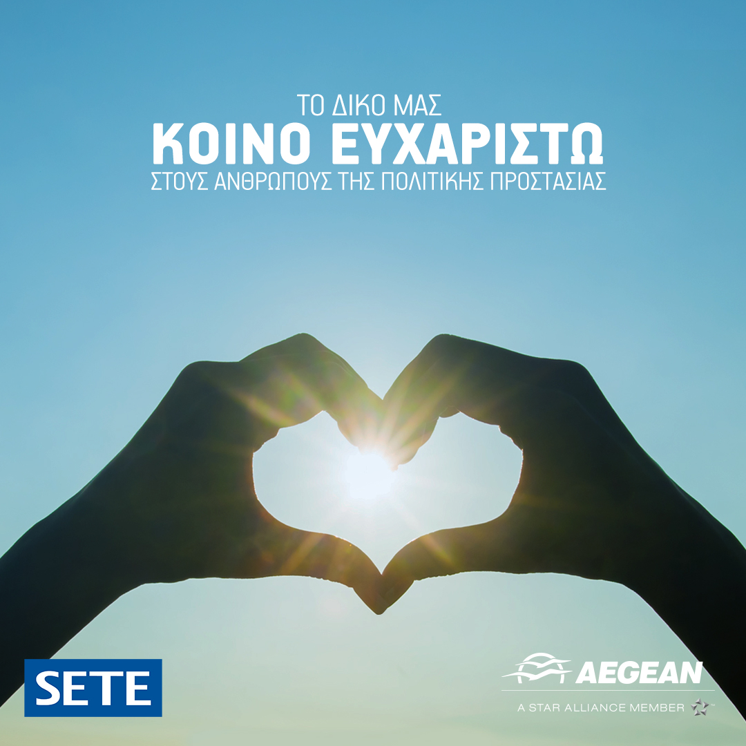 Σε μία κοινή πρωτοβουλία, AEGEAN και ΣΕΤΕ προσφέρουν ένα ολοκληρωμένο πακέτο διακοπών, αεροπορικά εισιτήρια και διαμονή, στους ανθρώπους της Πολιτικής Προστασίας, ως ένα ελάχιστο ευχαριστώ για όλα όσα προσέφεραν το προηγούμενο διάστημα και συνεχίζουν να προσφέρουν στη διαχείριση της υγειονομική κρίσης.